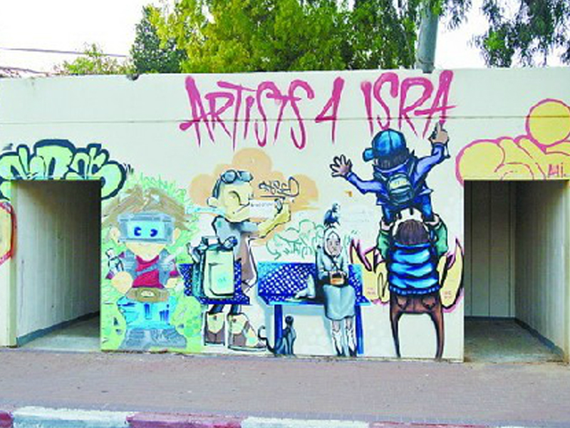 《環(huán)球時(shí)報(bào)》記者曾多次走訪位于以色列和加沙邊境、受火箭彈襲擊最猛烈的斯德洛特。這座擁有2.4萬(wàn)人口的小鎮(zhèn)有一個(gè)當(dāng)?shù)孛癖姴⒉幌矚g的名號(hào)——“世界防空洞之都”。當(dāng)?shù)氐姆揽斩疵芏确浅8?,?shù)十米即可見到一個(gè)。籃球場(chǎng)大小的空間內(nèi)容納有6個(gè)防空洞。不知是出于緩解緊張心情的需要,還是愛好藝術(shù)的以色列人的天性,幾乎每一個(gè)掩體上都繪有個(gè)性十足的涂鴉,有風(fēng)景畫、嘻哈風(fēng)、漫畫人物組圖等。
